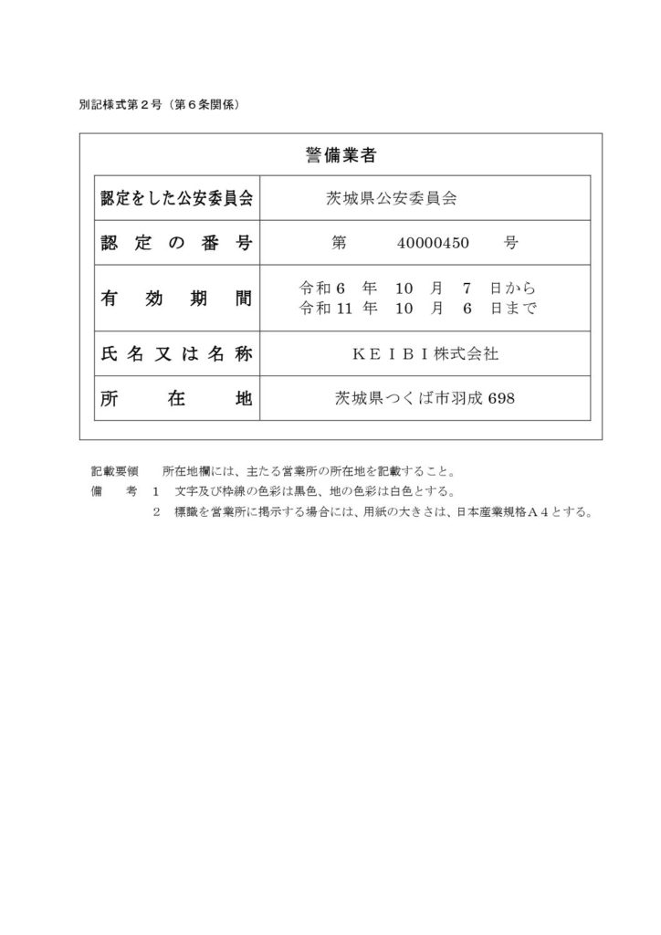 | 認定番号 | 茨城県公安委員会 第 40000450 号 |